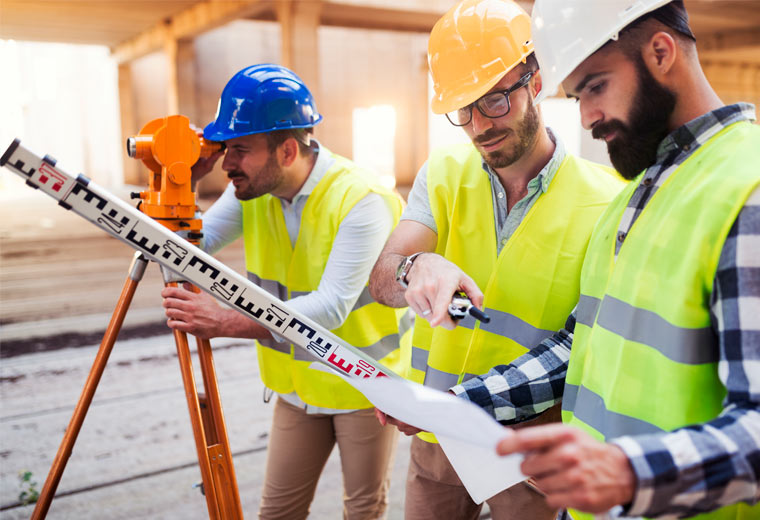 Gabaritos, fundações, terraplenagem, níveis, alinhamentos, verificação de prumo, laudo de recalque, áreas e demarcação de divisas.